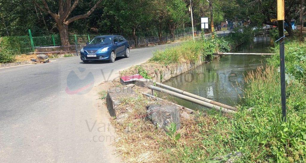 നഗരഹൃദയ ഭാഗത്ത് സംരക്ഷണ ഭിത്തിയോകൈവരിയോ ഇല്ലാതെ കനാൽ ഒഴുകുന്നു