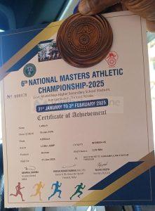 കുന്നംകുളത്ത് നടന്ന 6-ാമത് ദേശീയതല മാസ്റ്റേഴ്സ് അത്ലറ്റിക്സ് ചാമ്പ്യൻ ഷിപ്പ്(2025) ലോങ്ജമ്പ് ഇനത്തിൽ വെങ്കലമെഡൽ കരസ്ഥമാക്കിയ അകത്തേത്തറ ചെക്കിനിപ്പാടം അമ്മിണി മന്ദിരത്തിൽ കെ.ലത.